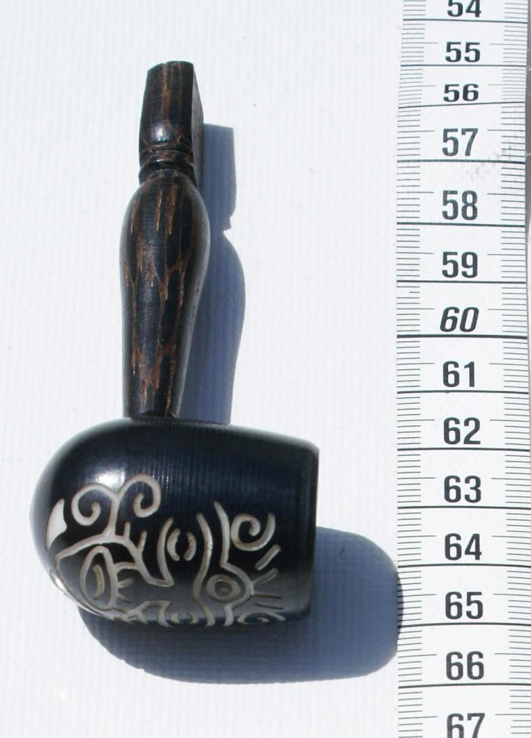 Handcarved tagua pipe with ethnic ornament
