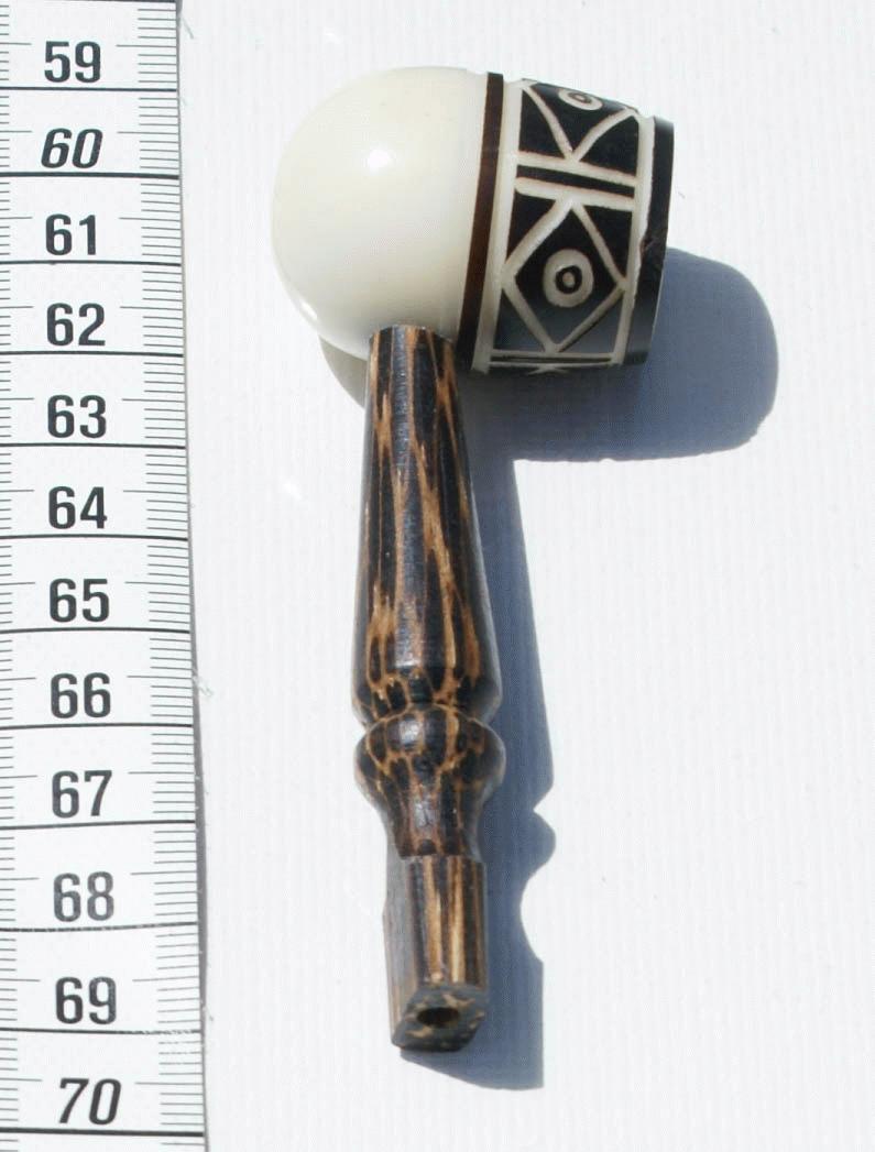Handcarved tagua pipe with ethnic ornament